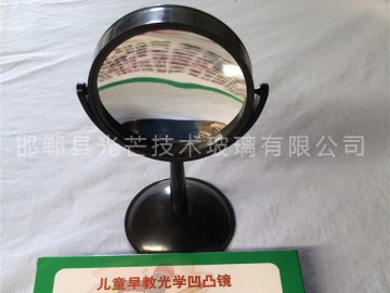 帶底座凹透鏡 直徑:10厘米 焦距:負(fù)300mm 幼兒園小朋友 或者中小學(xué)生認(rèn)識凹透鏡的特點 學(xué)習(xí)凹透鏡光學(xué)原理的的器材 尺寸大也時候教師教學(xué)演示用教具 知識拓展閱讀: 凸透鏡與凹透鏡可以從以下幾個方面加以區(qū)別:外形特征、對光線的作用、成像特點及用途等。具體方法如下: 方法一:用手摸,鏡子的中央部分比邊緣厚的是凸透鏡,鏡子的中央部分比邊緣薄的是凹透鏡。 方法二:隔著鏡子觀察距鏡子較近的書上的字,有放大作用的是凸透鏡;字變小的是凹透鏡。 方法三:隔著鏡子觀察距鏡子較近的書上的字,移動鏡子,若發(fā)現(xiàn)像的移動方向總是與鏡子的移動方向相同,則該鏡子是凹透鏡;若發(fā)現(xiàn)像的移動方向總是與鏡子的移動方向相反,則該鏡子是凸透鏡。 方法四:隔著鏡子觀察窗外的物體,若能看到上下左右都顛倒的像,這種鏡子是凸透鏡;若看到像是正立的,這種鏡子是凹透鏡。 方法五:將點燃的蠟燭放在離透鏡適當(dāng)距離處,在另一側(cè)光屏上能得到倒立實像的是凸透鏡;無論怎樣調(diào)節(jié),在另一側(cè)光屏上不能得到像的是凹透鏡。 方法六:讓鏡子正對太陽光照射,在鏡子的另一側(cè)放一張與透鏡平行的白色卡片紙,耐心調(diào)節(jié)鏡子與紙之間的距離,能得到一個小亮點的是凸透鏡;始終不能獲得小亮點的是凹透鏡。 方法七:觀察陽光通過了兩副眼鏡在地面上形成的光斑,若形成光斑的中間比四周明亮,則鏡子是凸透鏡;若形成光斑的中間比四周暗,則鏡子是凹透鏡。 方法八:近視眼鏡,是用凹透鏡做成的。老花鏡,是用凸透鏡做成的。 說明:辨別凸透鏡與凹透鏡有好多方法,哪種方法好,要視具體情況而定。例如,如果待辨別透鏡的中央與邊緣的厚薄差異不明顯,就不能用“摸”的方法(況且精密光學(xué)儀器是不允許直接用手去摸的);在有太陽光與沒有太陽光的場合,所選的方法也不同??傊?,一種好方法,應(yīng)該簡便、易行、有效。它是隨場合變化而變化的,不宜一概而論。 技巧:當(dāng)你想要判別兩件事物的相同和不同之處時,就需要用比較與對比的方法。比較就是找出事物的相似性,即共同特征。對比是找出事物的不同點。用這種方法來分析事物,能幫助你發(fā)現(xiàn)一些平時容易忽略的細(xì)節(jié)。