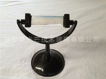三棱鏡是光學(xué)棱鏡中的一種形式,在外觀上呈現(xiàn)幾何的三角形,是光學(xué)棱鏡中最常見(jiàn),也是一般人所熟知的,但并不是最常用到的棱鏡。三棱鏡最常用于光線的色散,這是將光線分解成為不同的光譜成分。利用不同波長(zhǎng)的光線因?yàn)檎凵渎什煌?,在折射時(shí)會(huì)偏轉(zhuǎn)不同的角度,便會(huì)造成色散的現(xiàn)象。這種效應(yīng)也被用來(lái)對(duì)棱鏡物質(zhì)進(jìn)行高精密度的折射系數(shù)測(cè)量。 物質(zhì)的折射系數(shù)固然在不同的波長(zhǎng)會(huì)有所不同,但有些物質(zhì)的折射系數(shù)對(duì)波長(zhǎng)的變化比其他物質(zhì)強(qiáng)烈(色散非常明顯)。通常,BK7玻璃的色散較低,LaSF11玻璃的色散就很明顯,因此更適宜做為色散用的棱鏡。 棱鏡的頂角(在上圖中,上面的角)能夠影響到棱鏡色散時(shí)的特性。通常,要適當(dāng)?shù)倪x擇光線射入的角度和射出的角度,當(dāng)角度接近布儒斯特角(Brewster angle)時(shí),在折射時(shí)造成的損耗最小。 一束白光會(huì)分出不同顏色,一般就分為七種顏色,即紅、橙、黃、綠、藍(lán)、靛和紫。它是由透明材料作成的截面呈三角形的光學(xué)儀器,也叫“棱鏡”光學(xué)上用橫截面為三角形的透明體叫做三棱鏡,光密媒質(zhì)的棱鏡放在光疏媒質(zhì)中(通常在空氣中),入射到棱鏡側(cè)面的光線經(jīng)棱鏡折射后向棱鏡底面偏折。光從棱鏡的一個(gè)側(cè)面射入,從另一個(gè)側(cè)面射出,出射光線將向底面(第三個(gè)側(cè)面)偏折,偏折角的大小與棱鏡的折射率,棱鏡的頂角和入射角有關(guān).白光是由各種單色光組成的復(fù)色光;同一種介質(zhì)對(duì)不同色光的折射率不同;不同色光在同一介質(zhì)中傳播的速度不同.所以,因?yàn)橥环N介質(zhì)對(duì)各種單色光的折射率不同,所以通過(guò)三棱鏡時(shí),各單色光的偏折角不同。因此,白色光通過(guò)三棱鏡會(huì)將各單色光分開(kāi),形成紅.橙.黃.綠.藍(lán).靛.紫七種色光即色散。 1666年,英國(guó)物理學(xué)家牛頓做了一次非常著名的實(shí)驗(yàn),他用三棱鏡將太陽(yáng)白光分解為紅、橙、黃、綠、藍(lán)、靛、紫的七色色帶。據(jù)牛頓推論:太陽(yáng)的白光是由七色光混合而成,白光通過(guò)三棱鏡的分解叫做色散,彩虹就是許多小水滴為太陽(yáng)白光的色散. 白光是由各種單色光組成的復(fù)色光;同一種介質(zhì)對(duì)不同色光的折射率不同;不同色光在同一介質(zhì)中傳播的速度不同 。因?yàn)橥环N介質(zhì)對(duì)各種單色光的折射率不同,所以通過(guò)三棱鏡時(shí),各單色光的偏折角不同。因此,白色光通過(guò)三棱鏡會(huì)將各單色光分開(kāi),即色散。